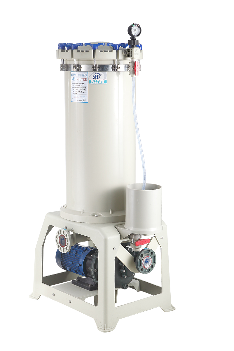 一般來說,電鍍過濾機在溫度-10℃~+80℃以下輸送液體,其過濾部分及機體全部采用PP,PVDF,PVC等多種材料!經過合理配方、模壓、加工而成,耐酸過濾機集多種PP優點,具有特強的耐腐性能,并具有機械強度高,不老化、無毒素分解等優點,是輸送和過濾各種強、弱酸的理想設備。
