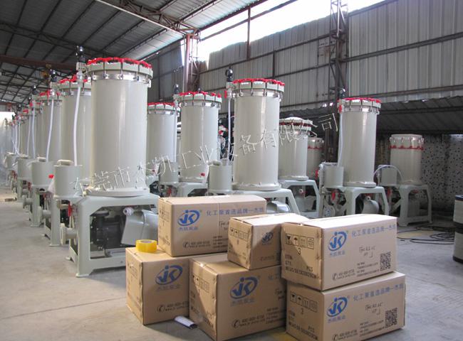 過濾機按其適用的工藝過程和處理功能可分為鍍前溶液除油過濾機和電鍍(化學鍍)過濾機兩大類。 過濾機按其配置的防腐蝕泵的類型可分為磁力泵和機械泵形式,磁力泵適用于固體懸浮物較少且沒有鐵磁金屬微粒的溶液連續過濾,其優點是只要塑料隔離套不破壞就無泄漏可能。
