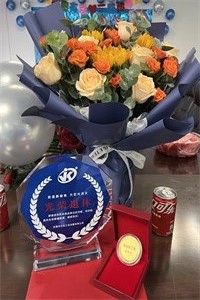 退休儀式上,劉總助為曾師傅獻上“忠誠員工金牌”、“退休紀念獎杯”以及鮮花。在全體員工的祝福下,曾師傅正式光榮退休。