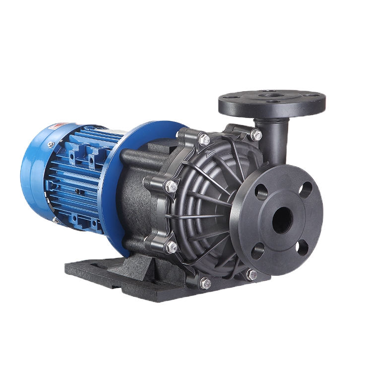耐高溫磁力泵是一種不存在動(dòng)密封的無泄漏流體輸送機(jī)械。主要針對(duì)葉片泵中的離心泵進(jìn)行設(shè)計(jì),通常由泵體、隔離套及連接部件組成能夠承受壓力的屏蔽密封腔體。在密封腔體的外部有一個(gè)旋轉(zhuǎn)的永磁場,并通過磁場的作用,帶動(dòng)密封腔體內(nèi)部的磁性轉(zhuǎn)子部件同步旋轉(zhuǎn),而密封腔體內(nèi)部的轉(zhuǎn)子部件帶動(dòng)葉輪實(shí)現(xiàn)對(duì)流體的做功。由于由定子部件組成的屏蔽密封腔體不存在動(dòng)密封,并且?guī)?dòng)葉輪做功的旋轉(zhuǎn)軸不穿出屏蔽密封腔體,從而保證了磁力泵的零泄漏、無污染。