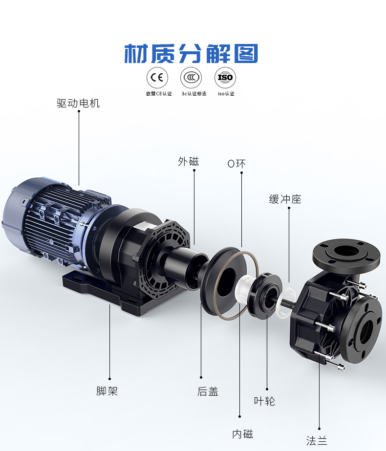 電動轉子不均衡;連軸器結合不良;軸承磨壞彎曲;運轉部分的零部件松懈、破裂;管線支撐架不牢等因素。可分別采取調控、修理、加固、校直、調換等辦法解決。上述狀況是導致耐酸堿磁力泵障礙的常見因素,并不是全部因素,實踐中解決障礙,因現實分析,應遵循先外后里的原則,切莫盲目操控。
