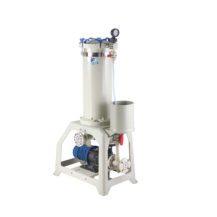 高壓過濾機采用透明PVC過濾器質,透明度高無色差,特顯高貴大方,能輕松看清過濾器的運行狀態,有利于辨別藥水過濾質量把控。設計上是濾芯式裝置,整體結構簡單,非常方便拆裝、清洗維護。對于降低水體的濁度、色度,凈化水質,減少對后續系統(反滲透、超濾、離子交換器)的污染等也有很好的作用。適用于海水淡化,化工廠的無機酸、有機酸、堿及氫氧化物,工業液體及制品,電鍍液,食品及植物油,制藥廠的醫藥品等的精密過濾。