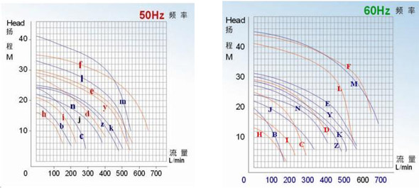 JKH-W 高壓耐酸堿液下泵性能曲線圖