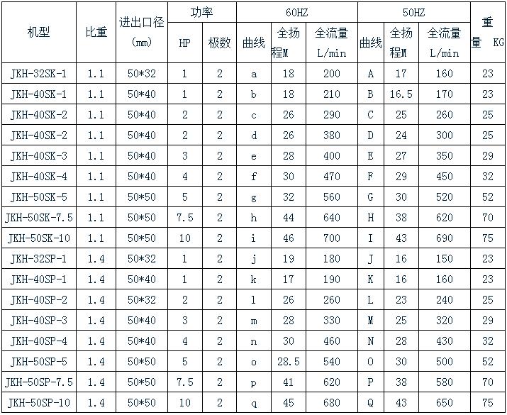 JKH-W 高壓耐酸堿液下泵規(guī)格表